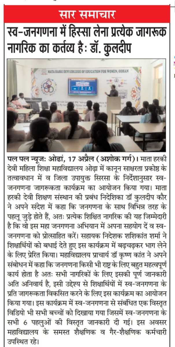 Census Self Enumeration स्व-जनगणना जागरूकता कार्यक्रम
