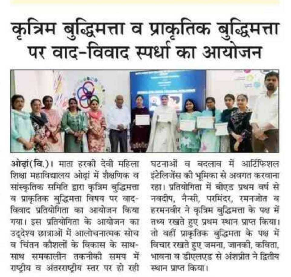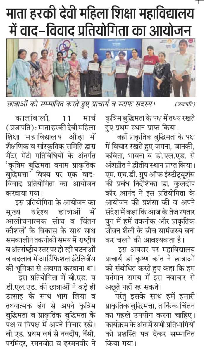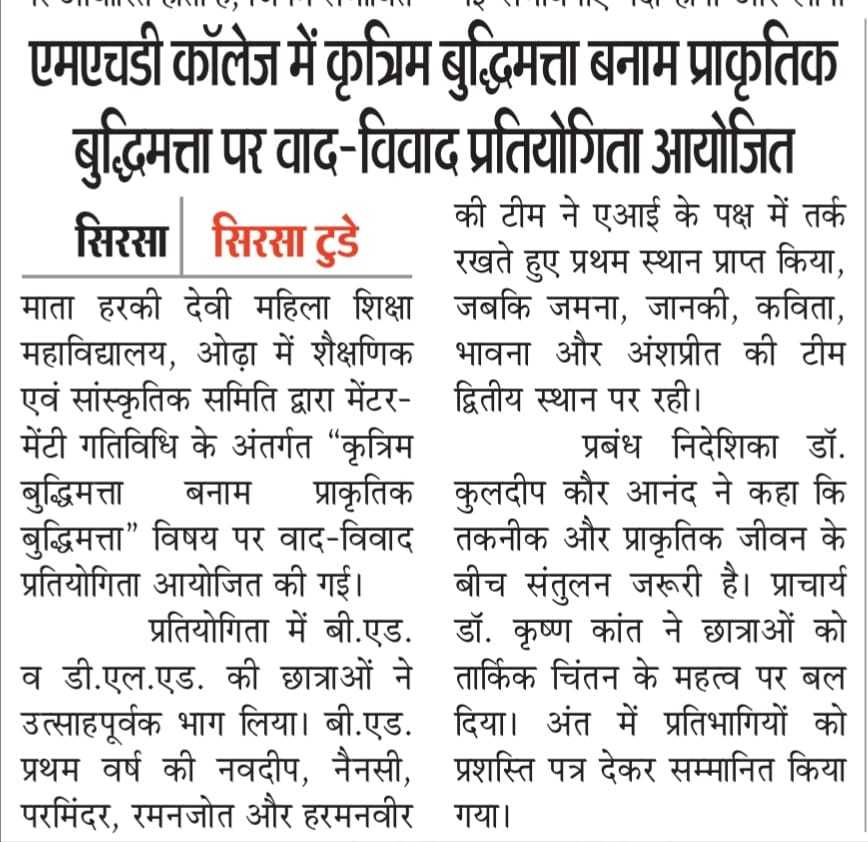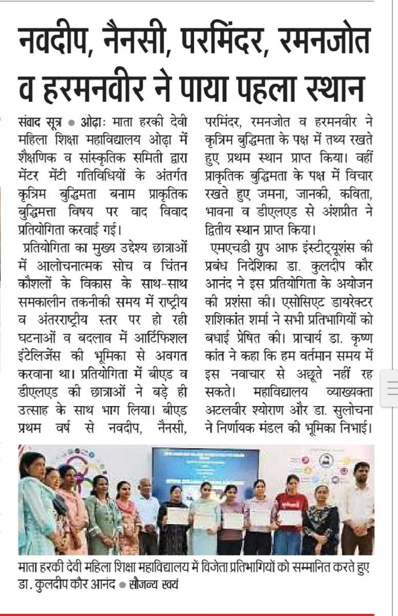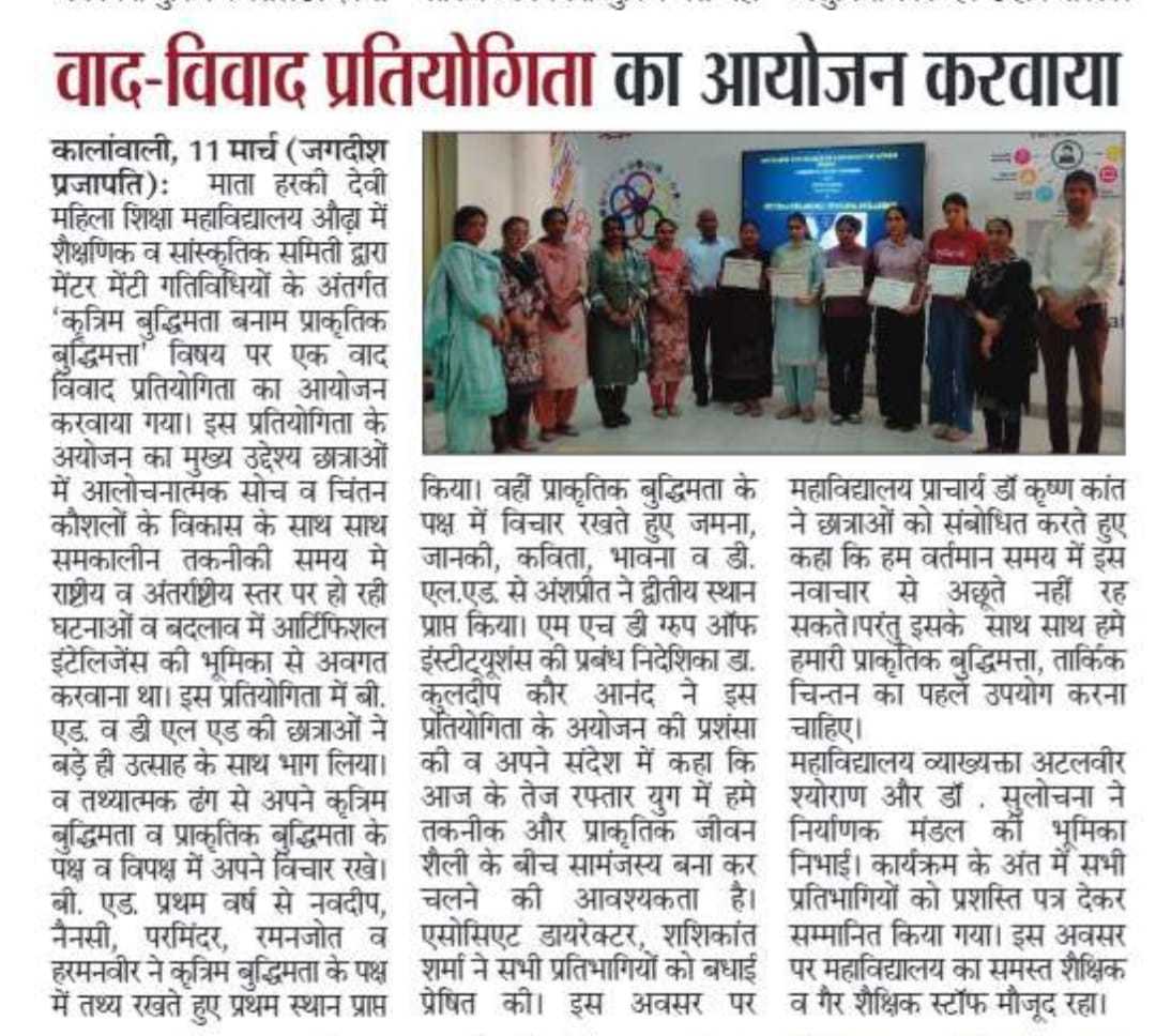 Debate Competition Under Mentor - Mentee Activity Artificial Intelligence VS Natural Intelligence