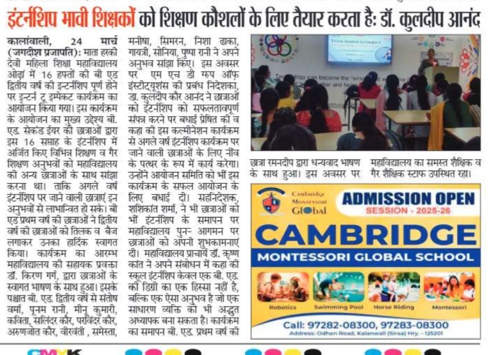From Intern to Impact: Teaching Intership Culmination Programme 2026